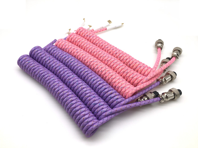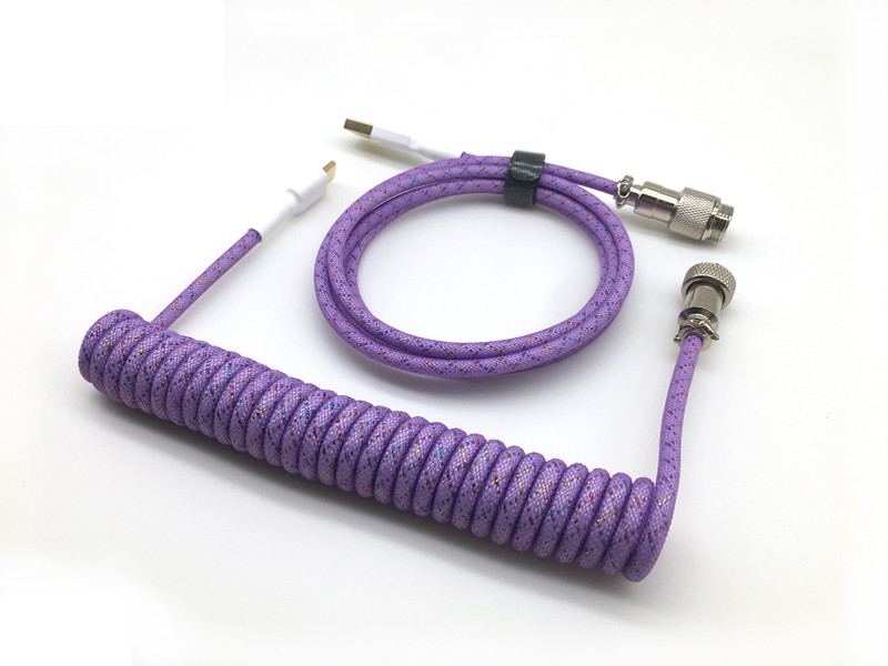 YL0325 Purple Brocade Keyboard Cable GX12 Customized Color Hand Make Spiral Paracord Coiled USB Type C Keyboard Cable With GX16