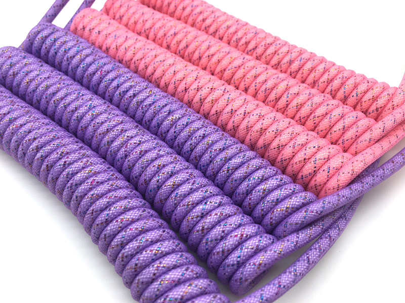YL0327 Purple Brocade Powder Brocade Woven Spring Wire Desktop Computer C Mechanical Keyboard Cable Data Aviation Connector Coil Charging Cable Spring Wire Braid Type-C