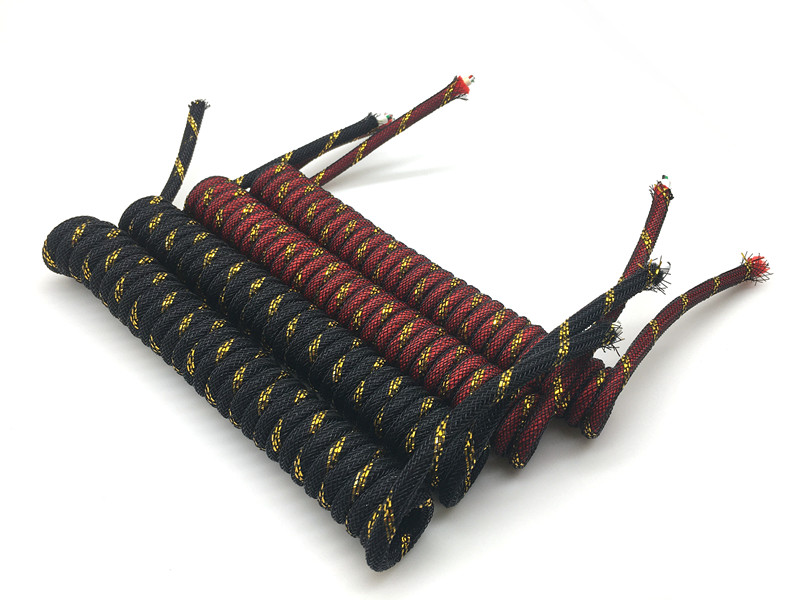 YL0328 Black Brocade Red Brocade Spring Wire Braided Coiled USB C Cables for Mechanical Gaming Keyboard Coiled Cable -Custom Keyboard Cable
